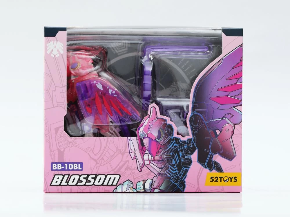 BeastBOX is an originally designed series of robotic-style creatures that transform into little cubes. BB-10BL Blossom is a bird-like creature that has an 8-inch wingspan in beast mode. The set also comes with a perch that attaches to the storage box.